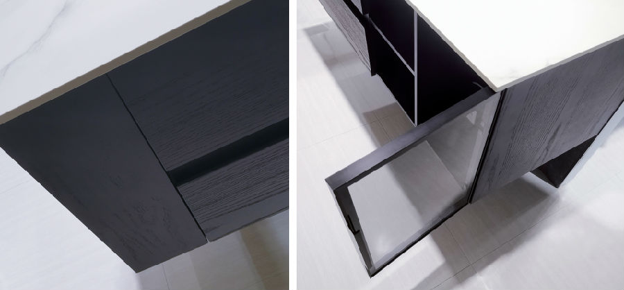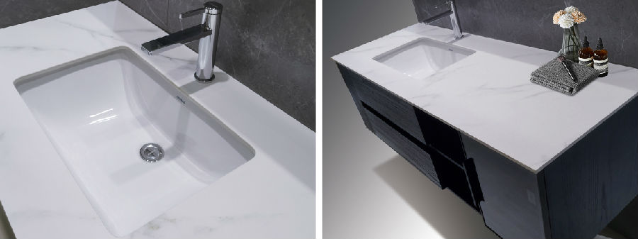 與此同時,巖板歷經(jīng)高溫淬煉,耐腐蝕、耐高溫、耐潮濕,陪你地老天荒。巖板光滑細(xì)膩,易清潔,嵌入式陶瓷盆,無清潔死角,浴室柜衛(wèi)生輕松搞定。